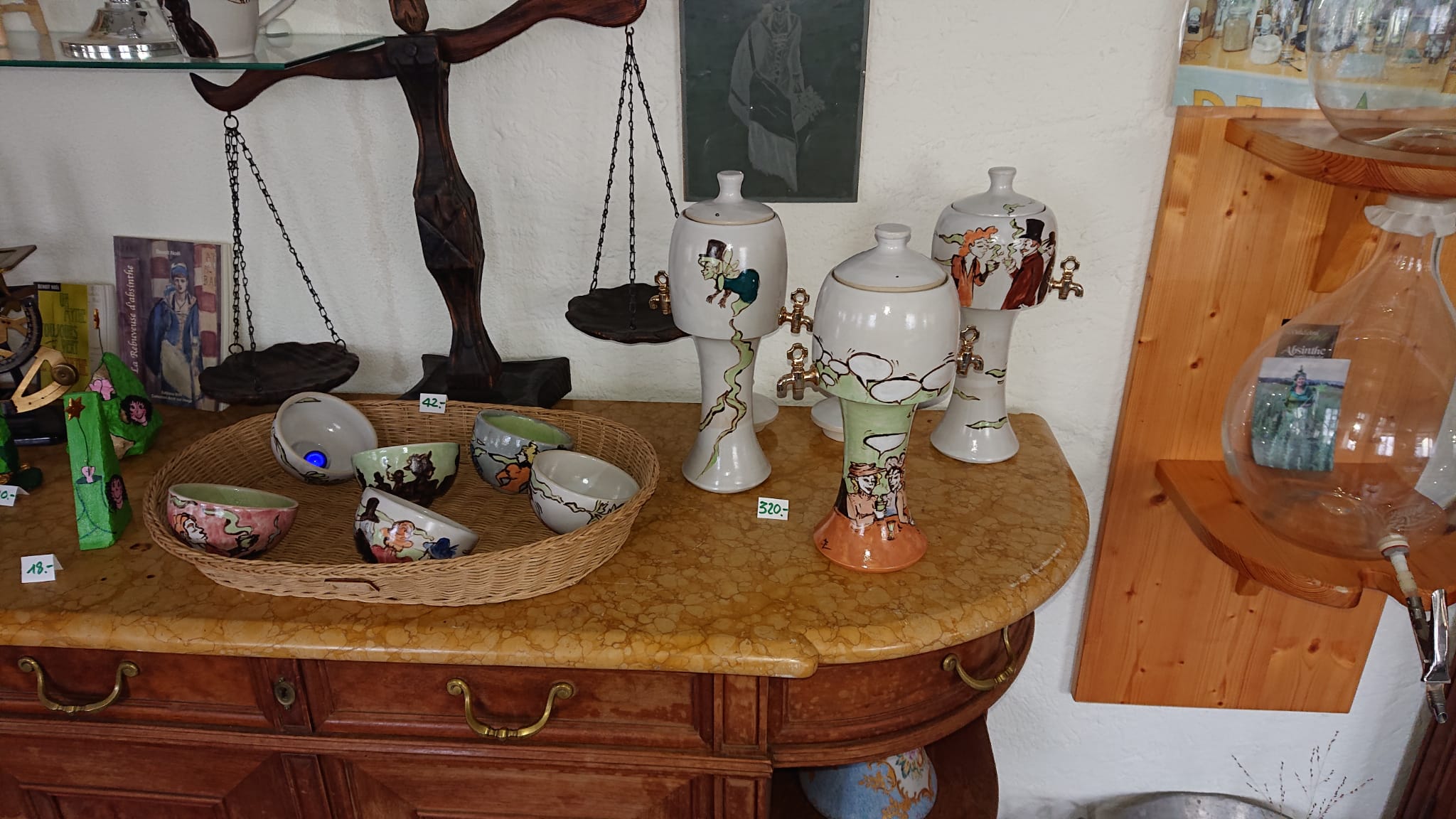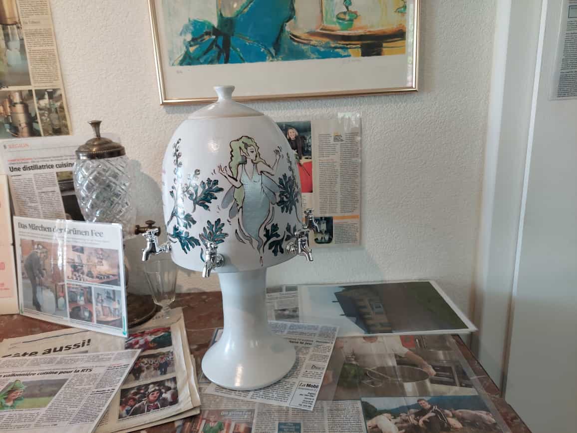 Wasserbrunnen und Tropfer, auf französisch Absinthe-Fontaine und Brouilleure genannt, stehen in der Absinth- Brennerei von Gaudenzia in Couvet (Val-de-Traver/NE ) zum Verkauf.