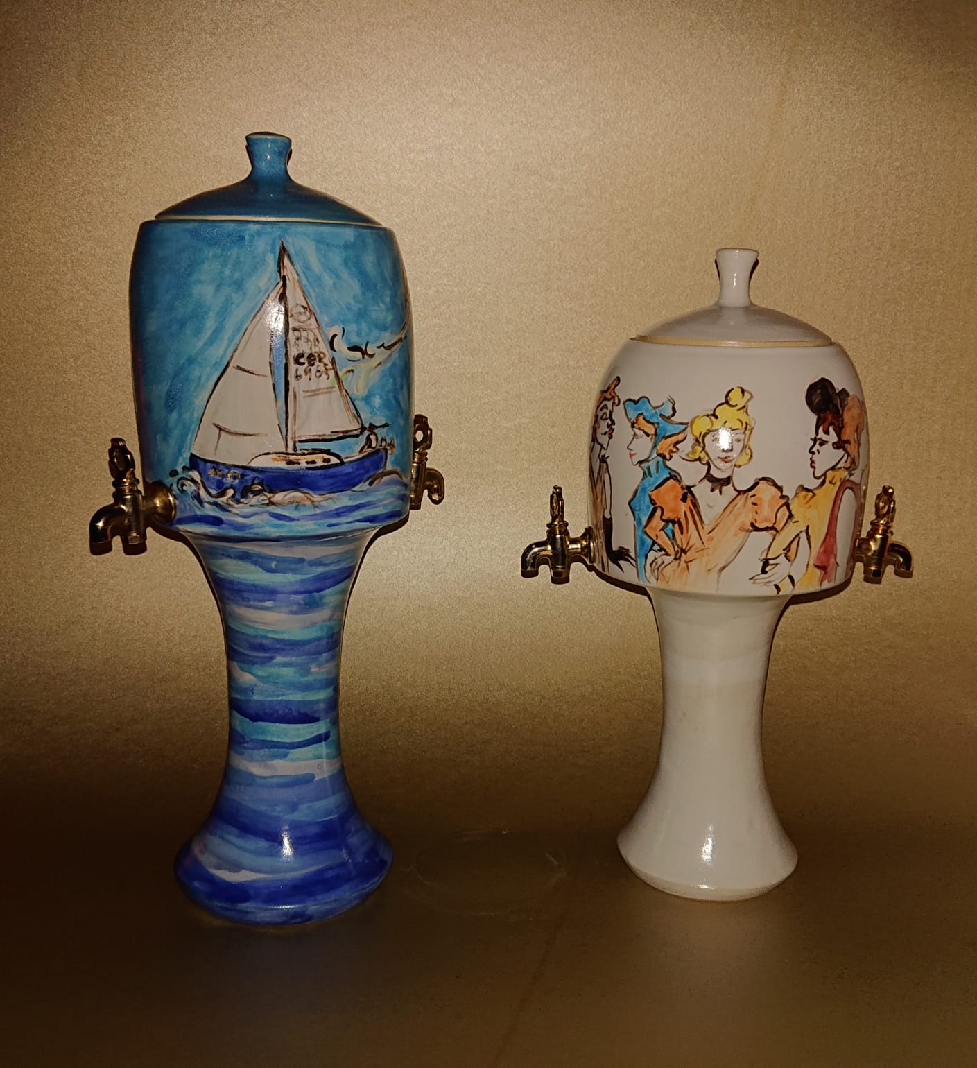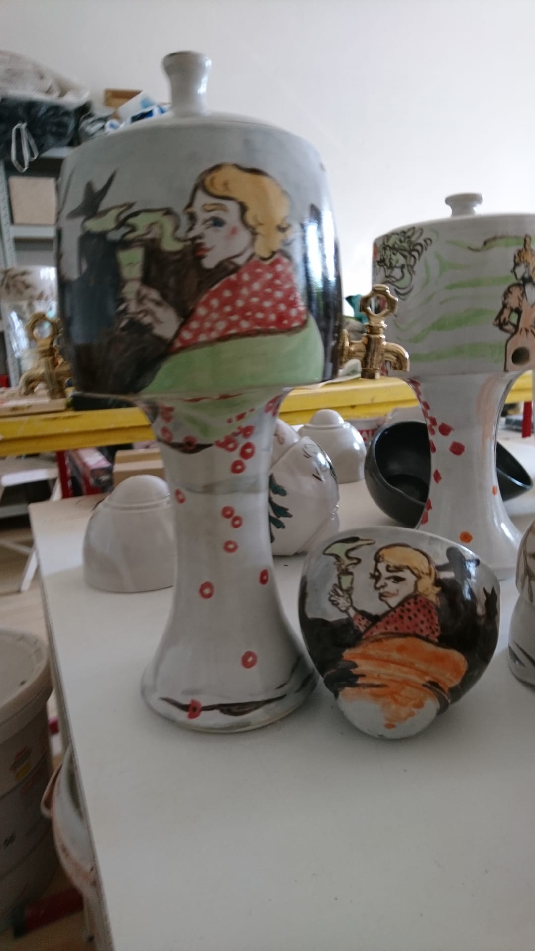 Auftragsarbeit von Gaudenzia Persoz- Jud aus Couvet NE Val-de- Travers Die bekannte Absinthbrennerin bestellte diese Wasserbrunnen welche traditionell benutzt werden zum mischen des Absinths (auch bekannt als die grüne Fee) mit Wasser. Auf Französisch spricht man von Absinthe- Fontaines und Brouilleure. Sie sollen zu ihrer Lebzeit in ihrer Brennerei als solche benutzt werden. Nach ihrem Tod, wünscht sich Gaudenzia, in einer davon beerdigt zu werden.