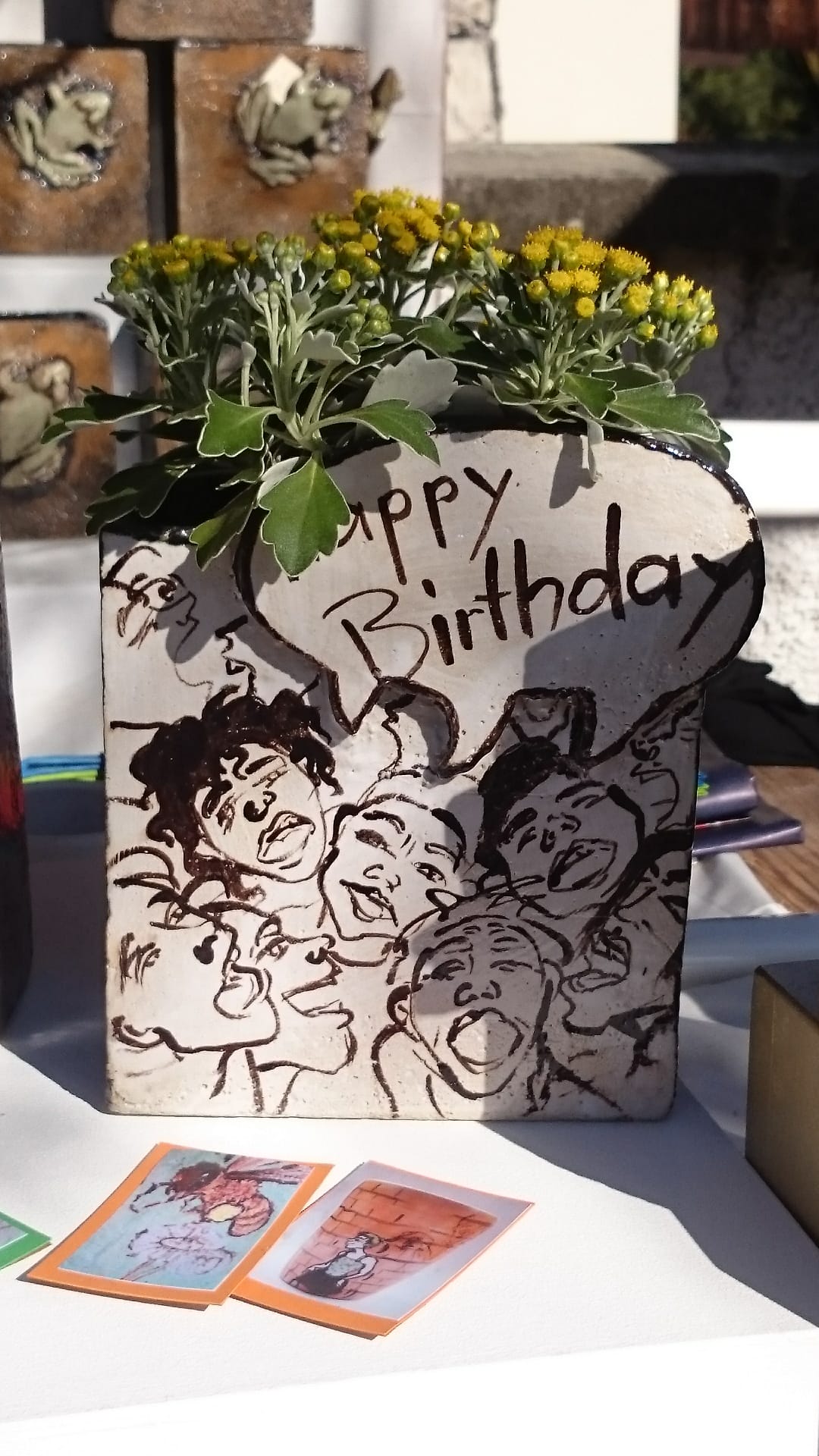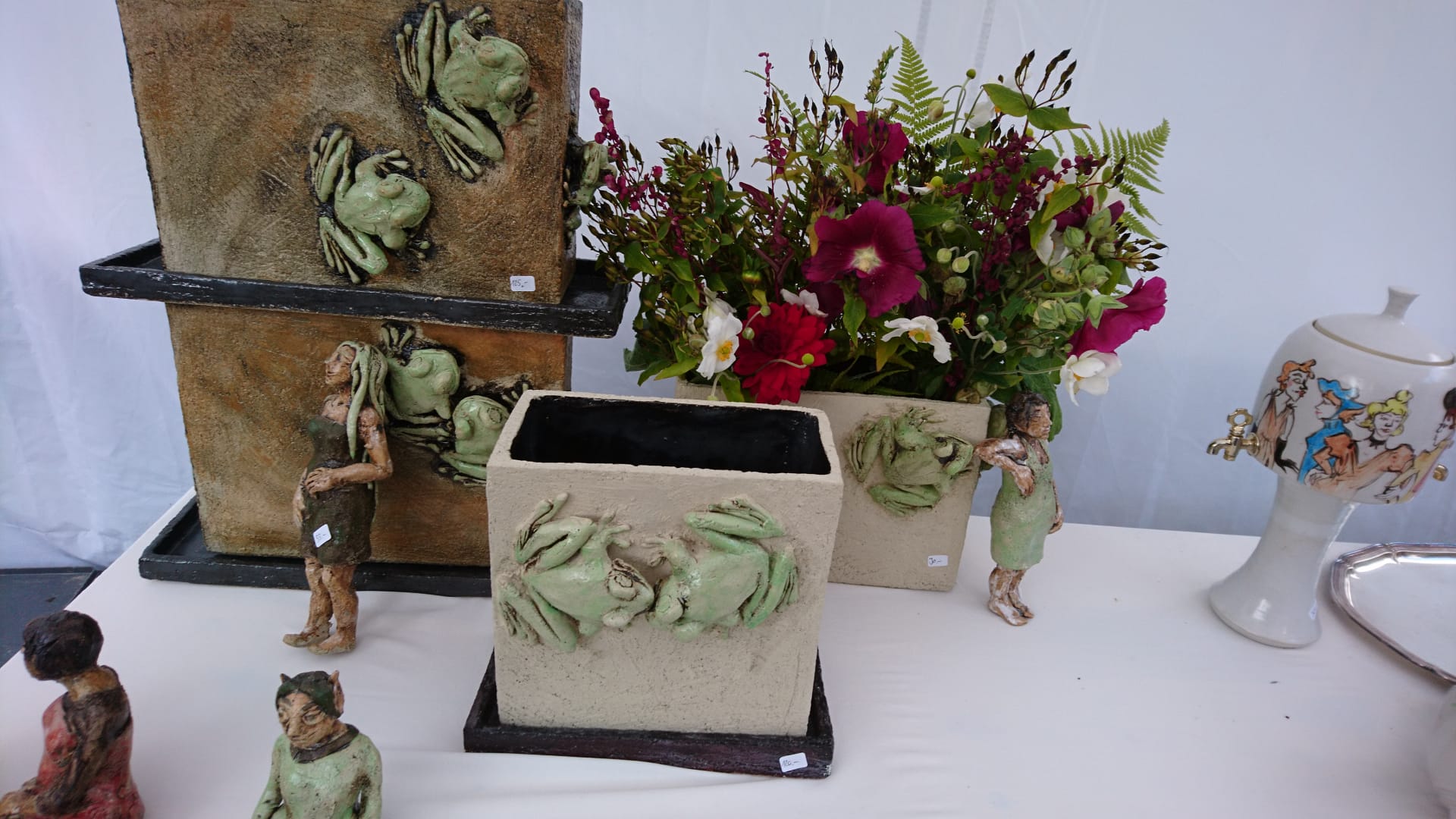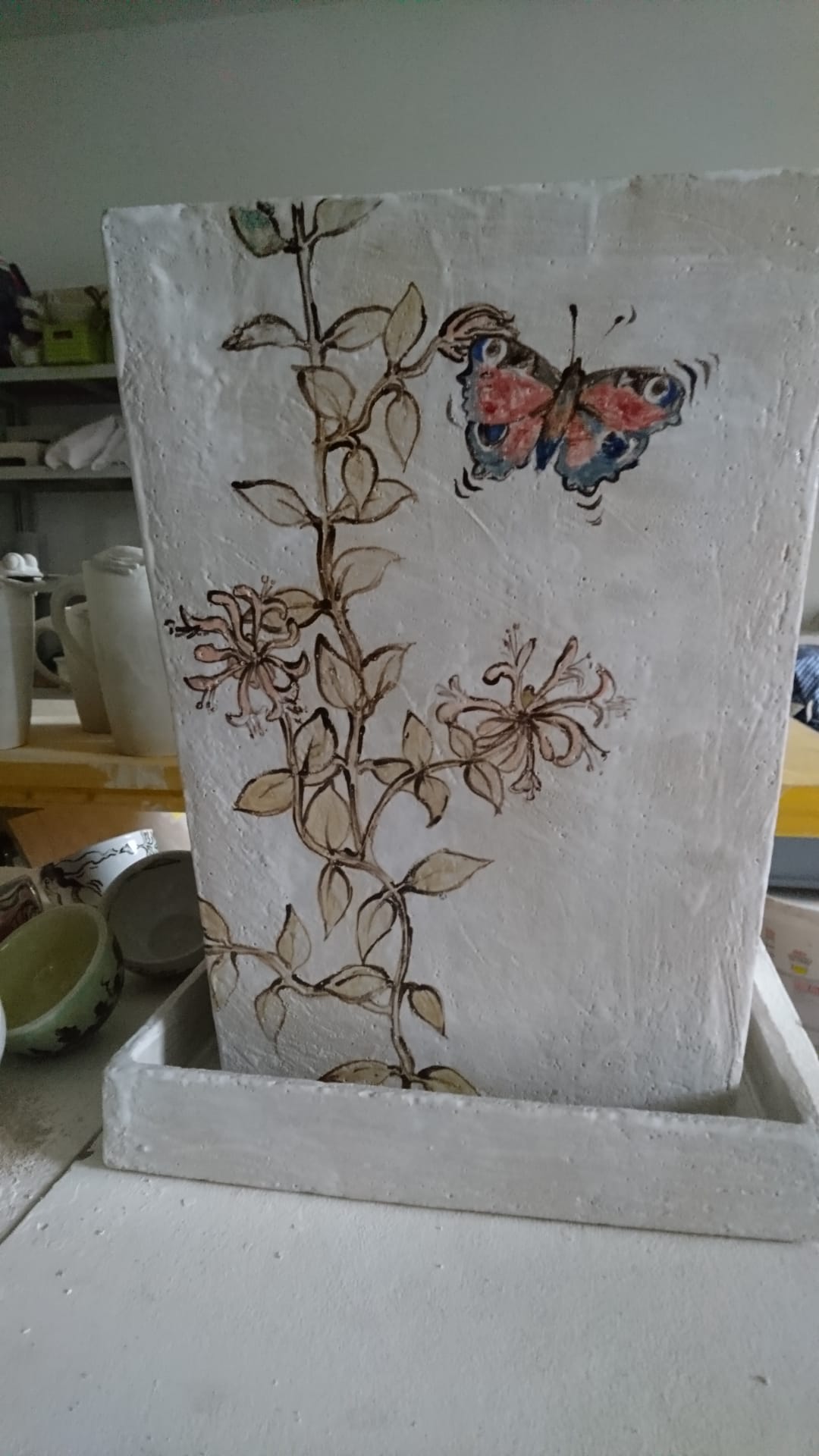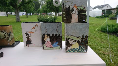 Steinzeug schamottiert Aufglasurmalerei wetterfest