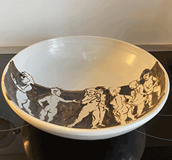 Steinzeug Aufglasurmalerei Eisenoxiddruck